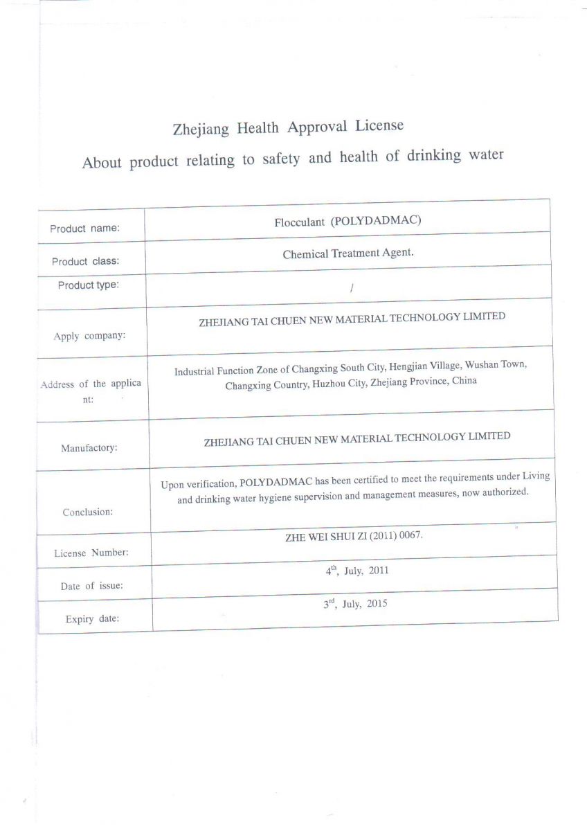 Zhejiang Tai Chuen New Material Technology Co., Ltd.(Hangzhou Yinhu Chemical Co., Ltd.)
